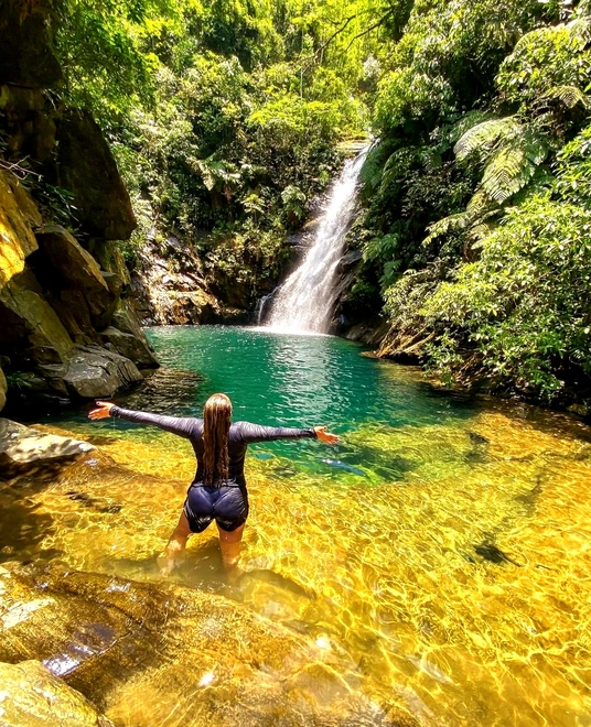 A Lagoa Azul em Cubatão é uma das cachoeiras mais lindas do litoral de São Paulo, conhecida por suas águas cristalinas e poços profundos. A trilha para chegar à cachoeira é de aproximadamente 4km. A cachoeira é um destino popular para quem busca uma aventura natural e paisagens deslumbrantes.